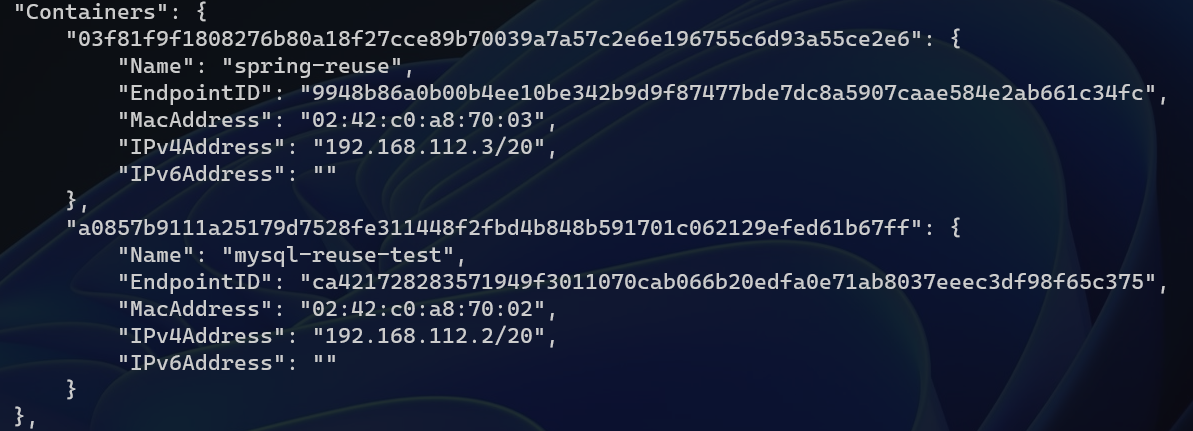 docker inspect 로 제대로 생성이 된 것을 확인,