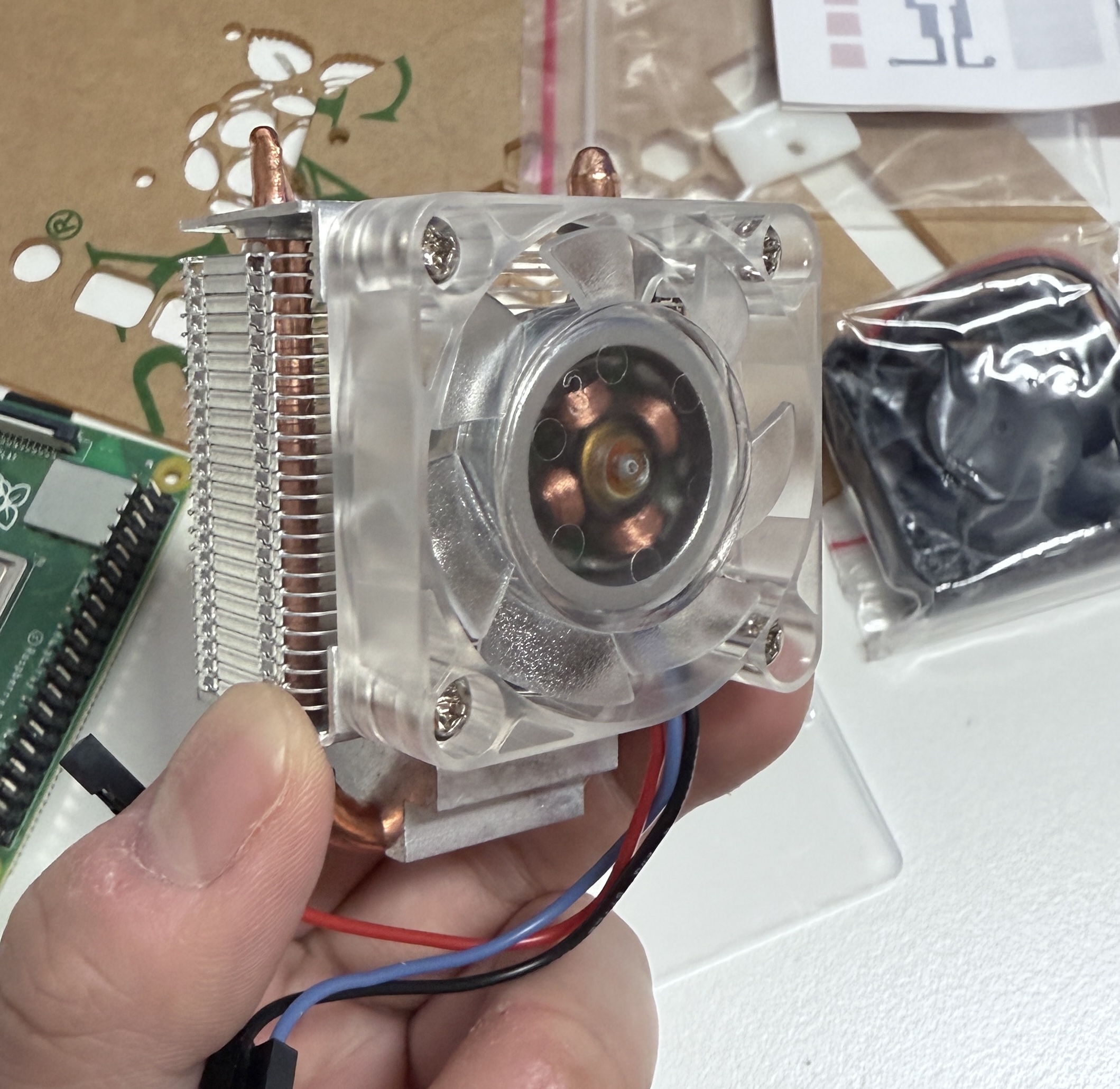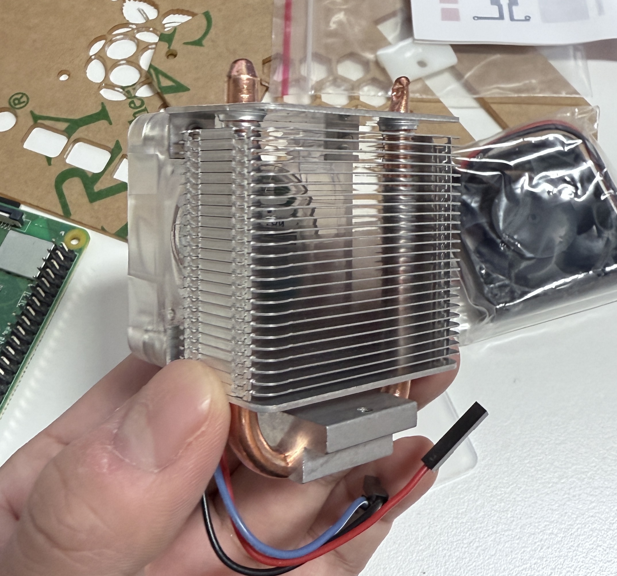 우선 설명서는 라즈베리파이에 쿨링 타워만을 설치하는 방법을 보여주는데 있는대로 설치하고 나면 케이스에 장착을 할 수 없는 상태가 되어버린다...