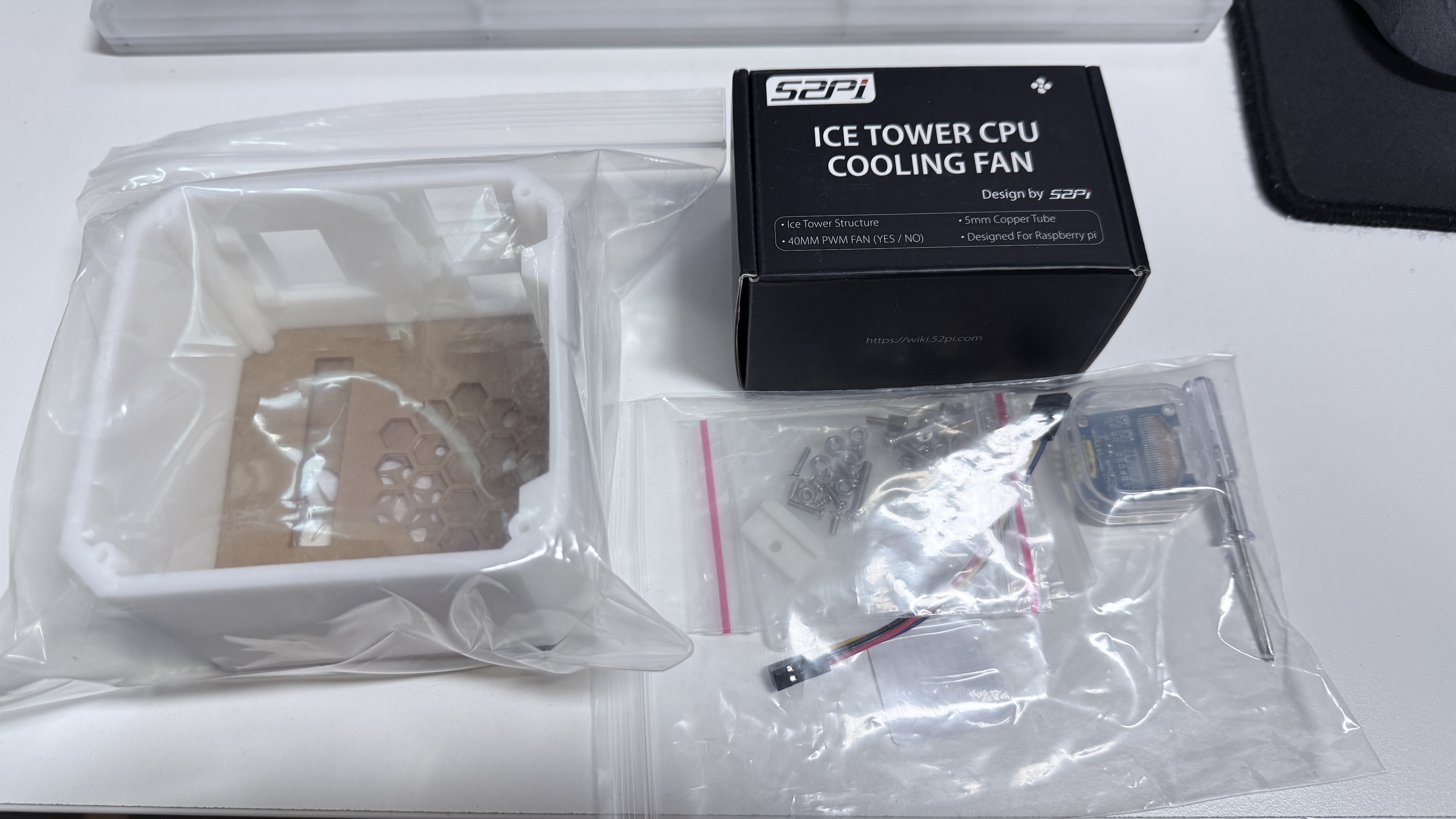 구성품으로는 생각보다 큰 케이스, 쿨링팬, OLED 스크린, 나사등 기타 부속품으로 되어 있다.